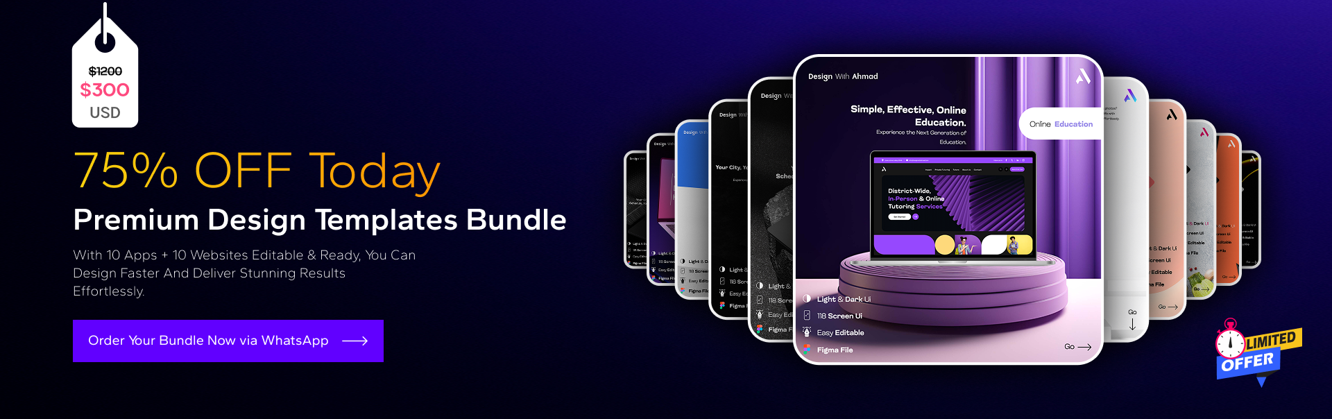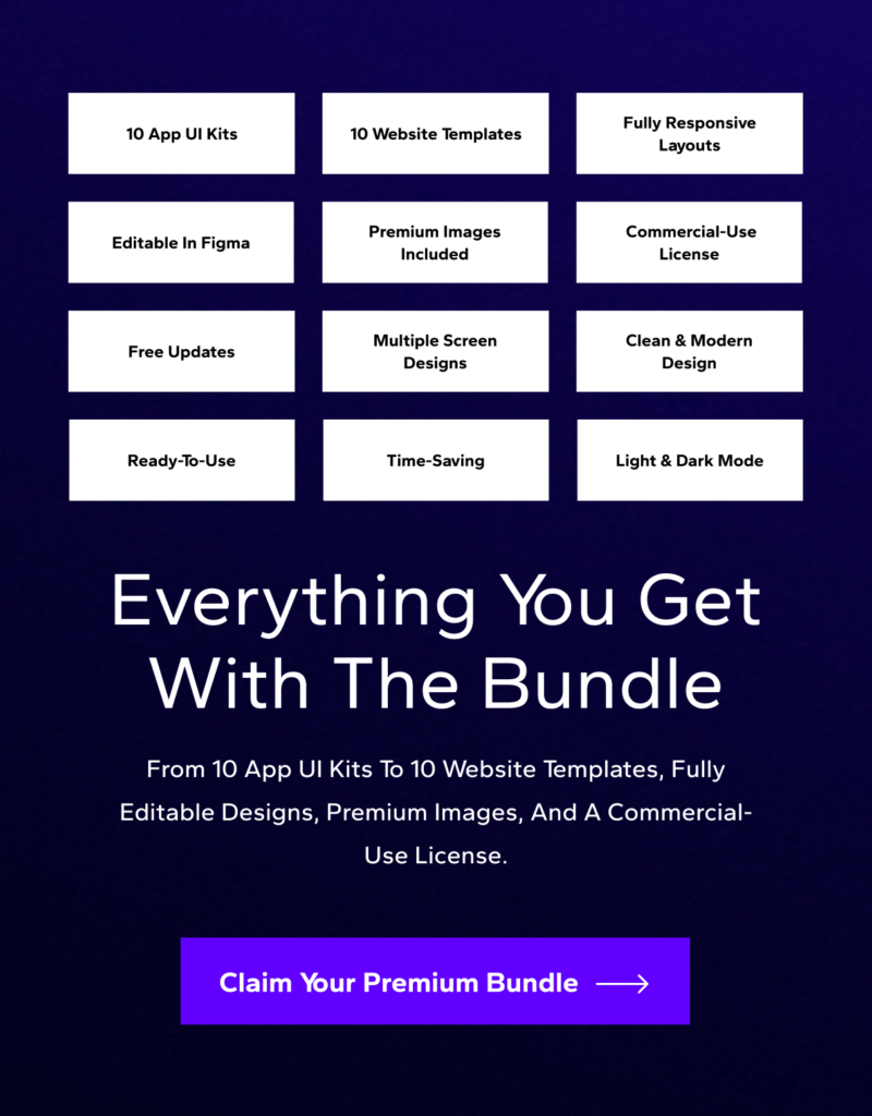 Our premium bundle includes 10 app designs and 10 website designs, all fully responsive and available in both light and dark modes. Each template comes with all premium images and assets included, ensuring you have everything needed to create stunning projects.